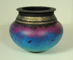 Rick Foris raku pottery available at RiverEdge Galleries, Mishicot, WI.