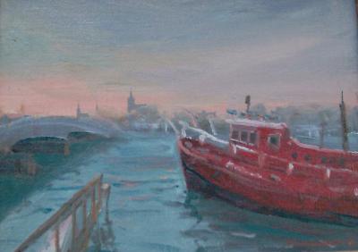 Fire Boat, oil, 11.5" x 8.5"