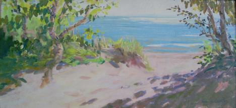 Lake Michigan Morning, oil on panel, 7.5" x 15"